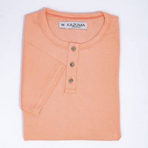 Remera manga corta de jersey slim fit lisa con botones en el cuello. Color: Rosa.